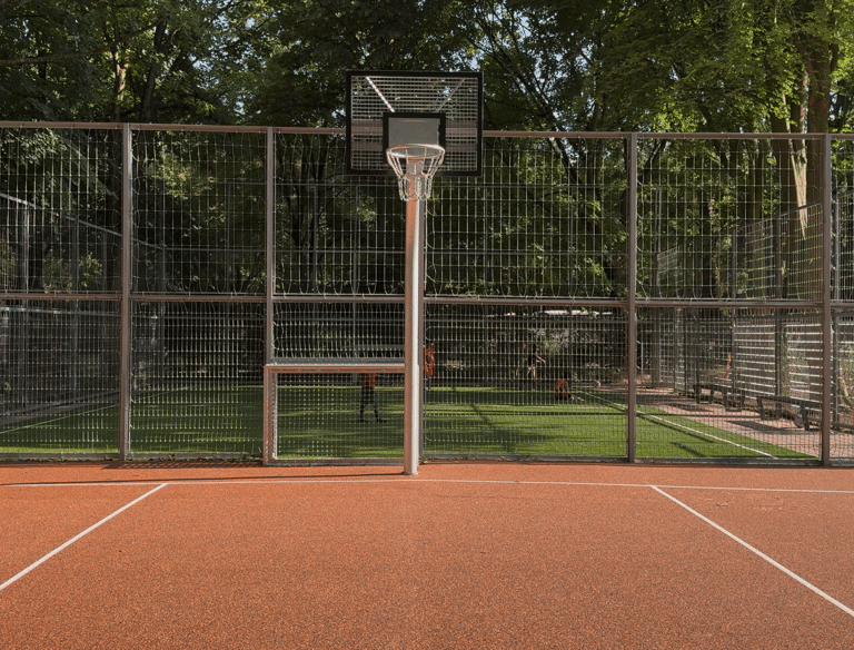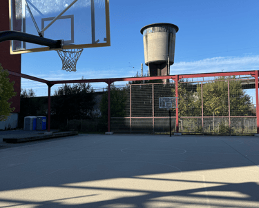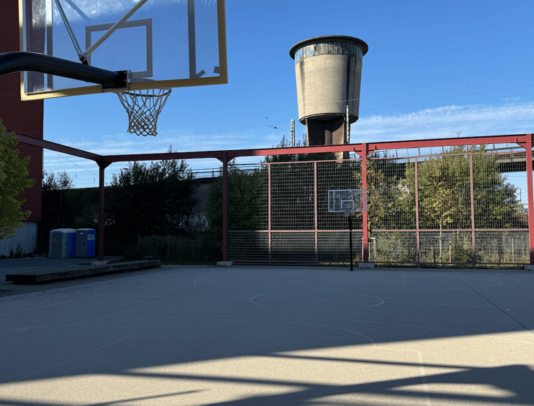 Dieser Platz ist beliebt, aber wenig bespielt und es gibt nur einen Korb.